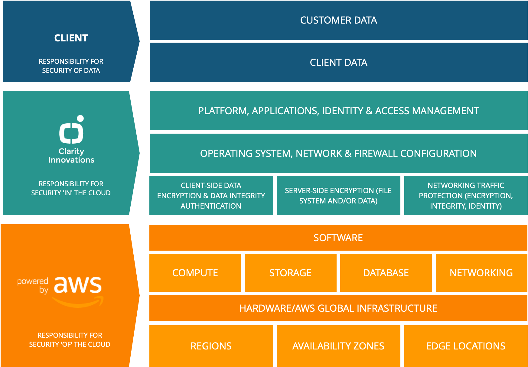 We also leverage Amazon Web Services’ shared responsibility model to clarify security domains:
